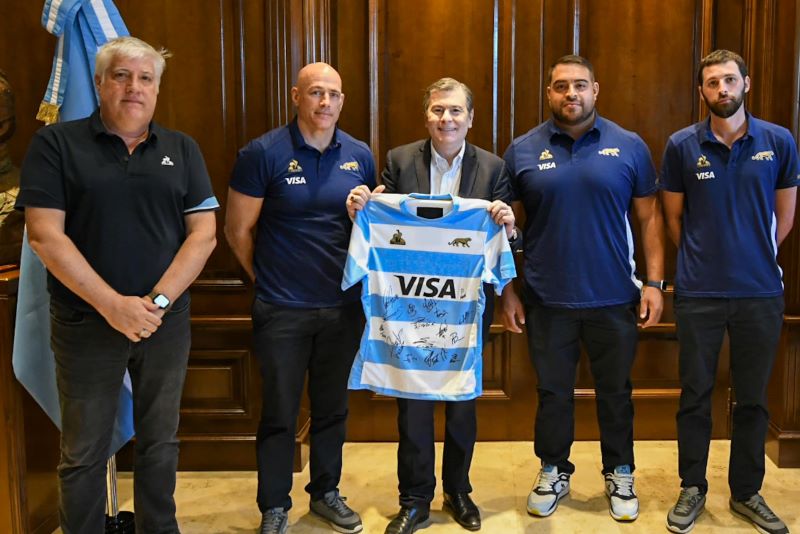 El gobernador Gerardo Zamora recibió en Casa de Gobierno a Felipe Contepomi, técnico del Seleccionado Argentino de Rugby, Los Pumas, al manager del equipo, Juan Passano; al gerente comercial de la Unión Argentina de Rugby, Miguel Dupont, y al jugador santiagueño Pedro Delgado.