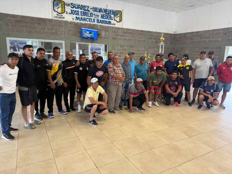 El comisionado municipal de Estación Simbolar, Omar Alderete, compartió un grato momento con los representantes de los equipos que se consagraron en los primeros puestos de la Liguilla de Fútbol de esta zona del departamento Banda.