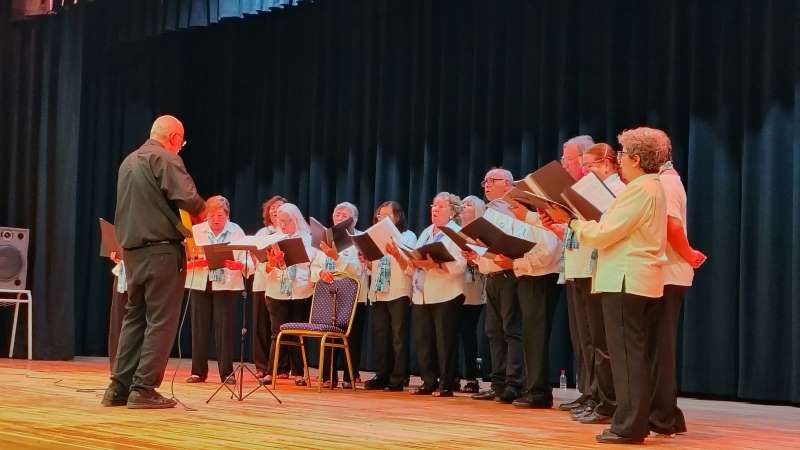 Dirigido por el Profesor Juan Carlos Cano los coreutas deslumbraron con su repertorio que incluyó reconocidas piezas de la música popular.