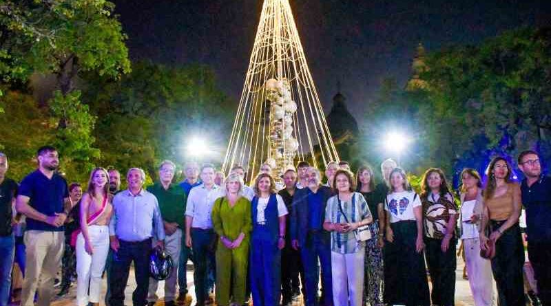 Acompañada por una importante cantidad de vecinos, la intendente, Ing. Norma Fuentes, encabezó el encendido de luces ornamentales de la plaza Libertad, del microcentro, de las principales avenidas y del tradicional árbol de navidad ecológico ubicado en la explanada de la Municipalidad de la Capital.