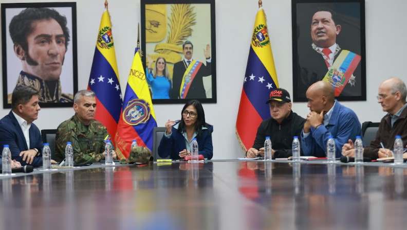 Junto a Rodríguez, las imágenes mostraron a dos de los principales operadores del régimen: el ministro de Defensa Vladimir Padrino López y el ministro del Interior Diosdado Cabello.
