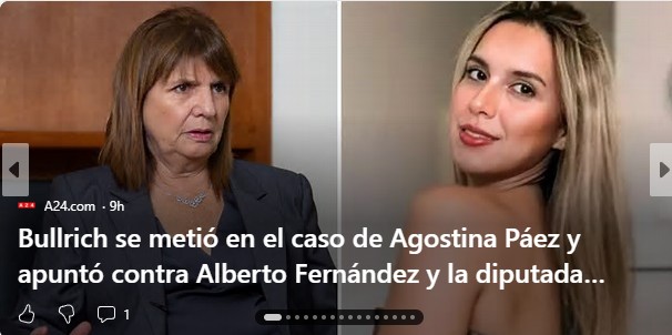 “Acabo de hablar con la madrastra de Agostina (la abogada que denunció al empresario Mariano Páez y a la propia Agostina). Están desesperados. La angustia es total. Lo que ayer parecía encaminarse, hoy se aleja. Su prioridad es una sola: su hija. Volver a tenerla en casa”, confió la senadora en su cuenta de la red social X y agregó que la familia de Páez “no aceptó” realizar un “agradecimiento público” hacia Alberto Fernández y Marcela Pagano, quienes se pronunciaron públicamente en favor de la abogada.